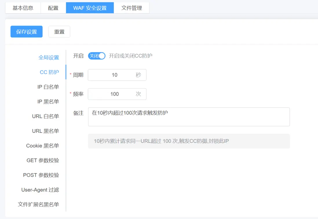 CC防護: 抵禦惡意頻繁請求(如不斷刷新頁面),避免服務器資源被消耗導致網站癱瘓。