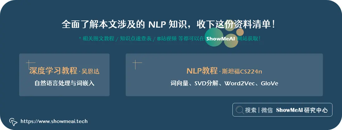 - 📘 NLP教程 | 斯坦福CS224n · 課程帶學與全套筆記解讀:https://www.showmeai.tech/tutorials/36