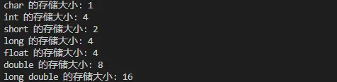 printf("int 的存儲大小: %d\n", sizeof(int));