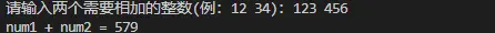 printf("請輸入兩個需要相加的整數(例:12 34):"); //提示用户輸入兩個整數