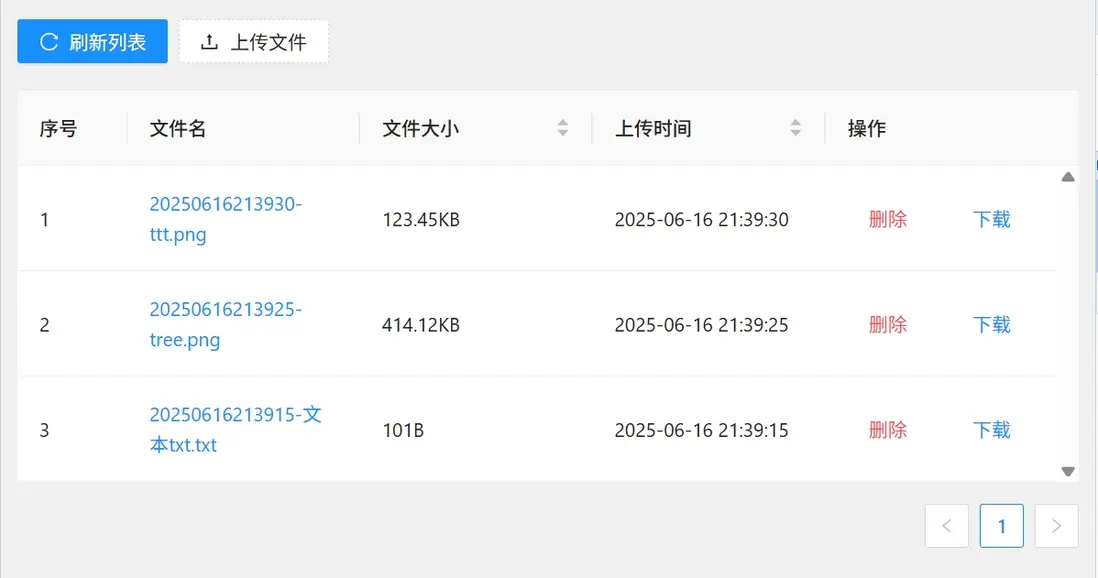 功能有:上傳文件、查詢文件列表、刪除文件、下載文件等
