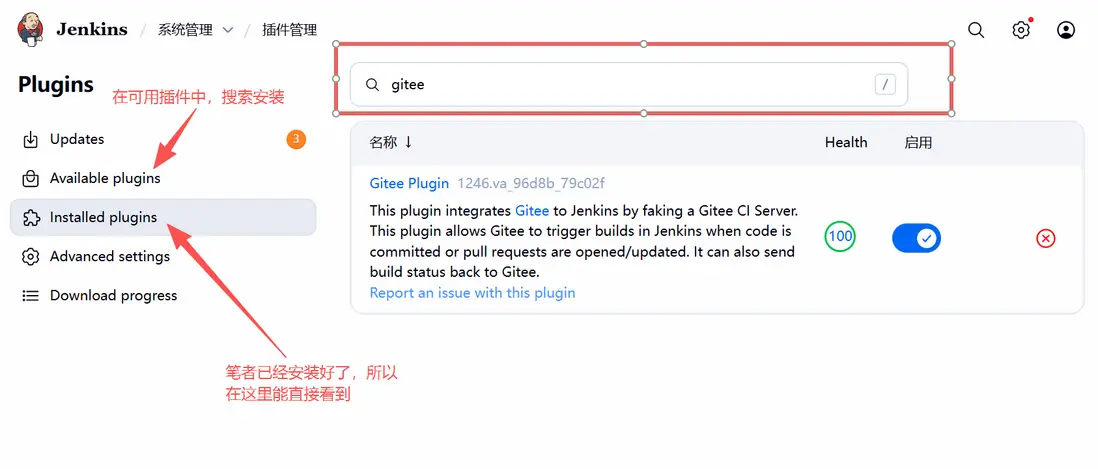 在jenkins中安裝gitee插件,插件很多很豐富,視情況安裝