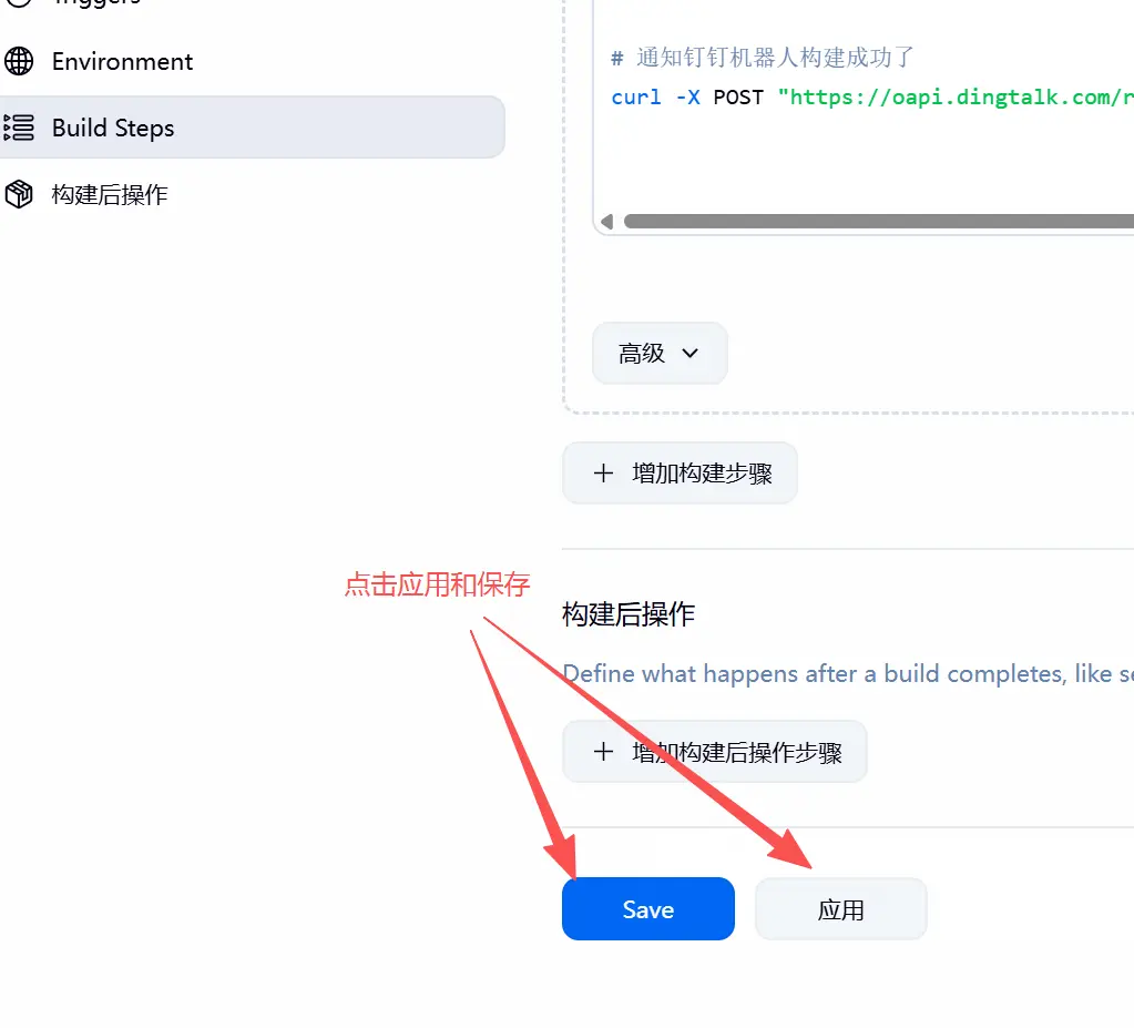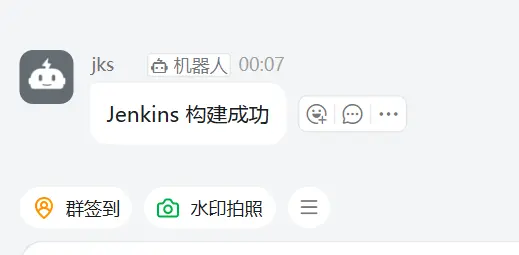 curl -X POST "https://oapi.dingtalk.com/robot/send?access_token=access_token" -H "Content-Type: application/json" -d "{\"msgtype\": \"text\", \"text\": {\"content\": \"Jenkins 構建成功\"}}"