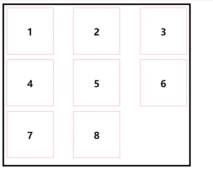 如果是正好9個項,那這種寫法沒有問題,如果是8個項,最後一行的7和8就會兩側分佈了,如下圖: