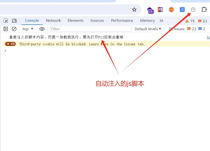console.log('直接注入的腳本內容,頁面一加載就執行,要先打開F12控制枱看哦');