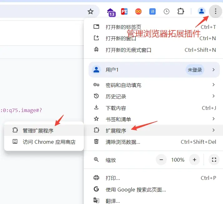 或者地址欄輸入:chrome://extensions/ 回車直接訪問