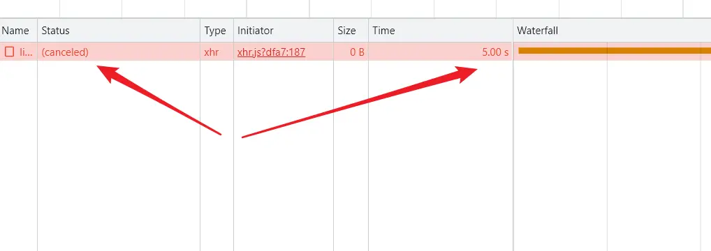 筆者看一下報文,發現請求的狀態從開始的pending等待到最後的canceled取消。
