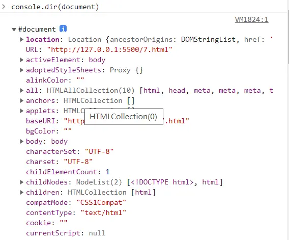 5. console.dir()方法,一般用於打印dom對象,查找其身上的屬性,挺常用的。圖示如下: