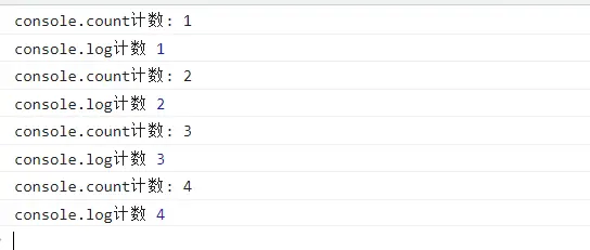 3. console.count()方法,這個方法有點雞肋,就是用來計數的,計數的話,我們使用console.log也是可以計數的。看代碼就知道了