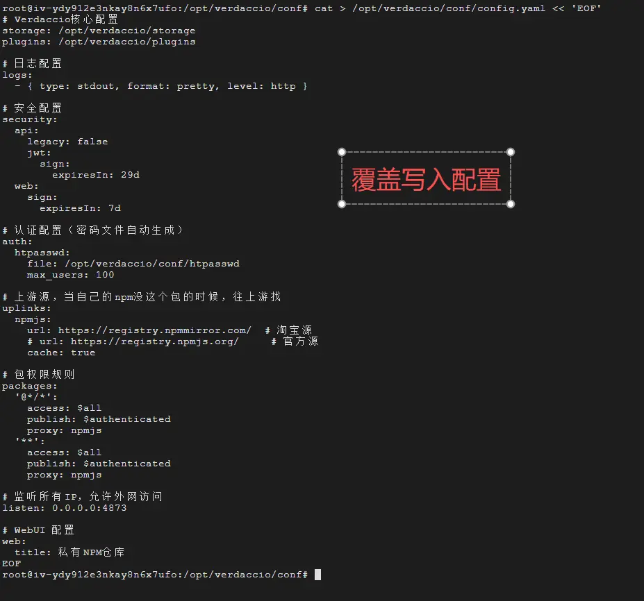 cat > /opt/verdaccio/conf/config.yaml << 'EOF'