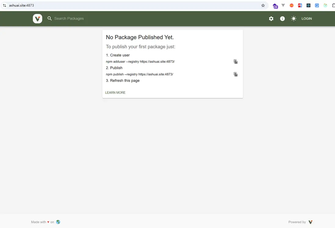 至此,私服npm就搭建成功了(當然,目前還沒有包)