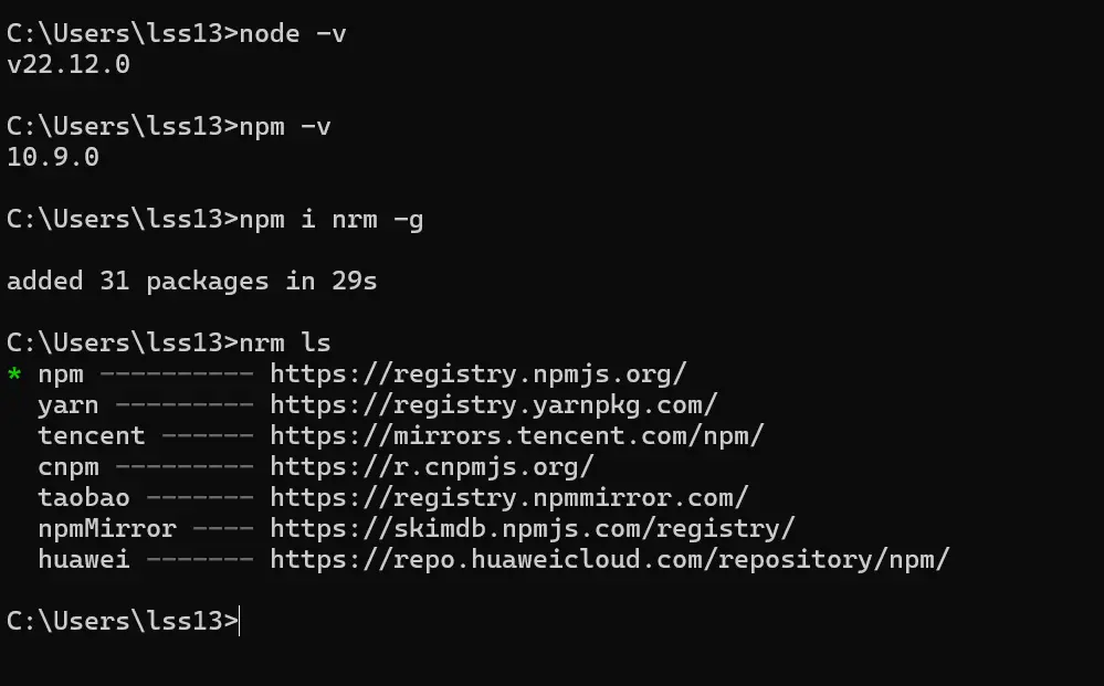 C:\Users\lss13>nrm use self-npm