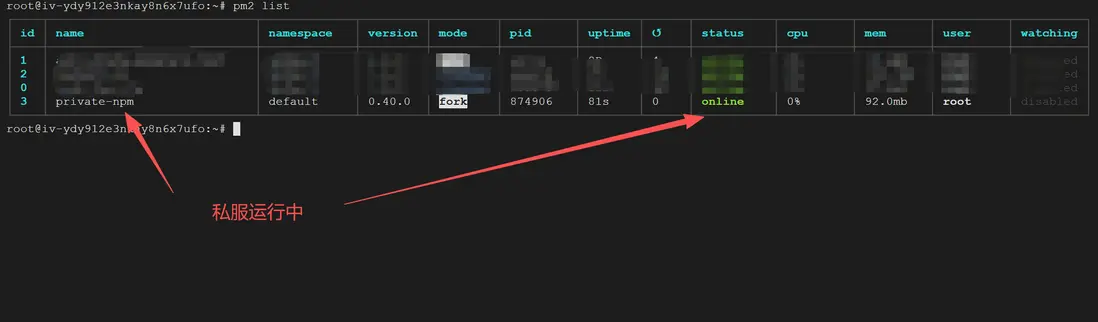 然後,用pm2進行管理私服npm(強烈推薦)