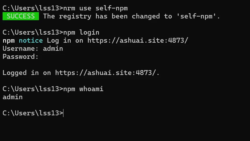 C:\Users\lss13>nrm add self-npm https://ashuai.site:4873/