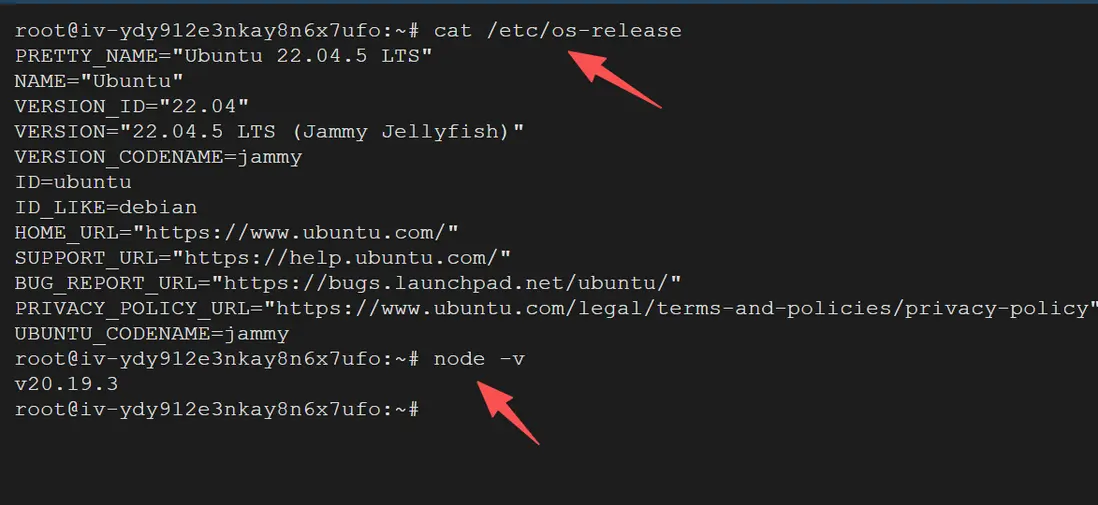 首先,筆者的服務器是烏班圖22,同時node也有是20版本,如下