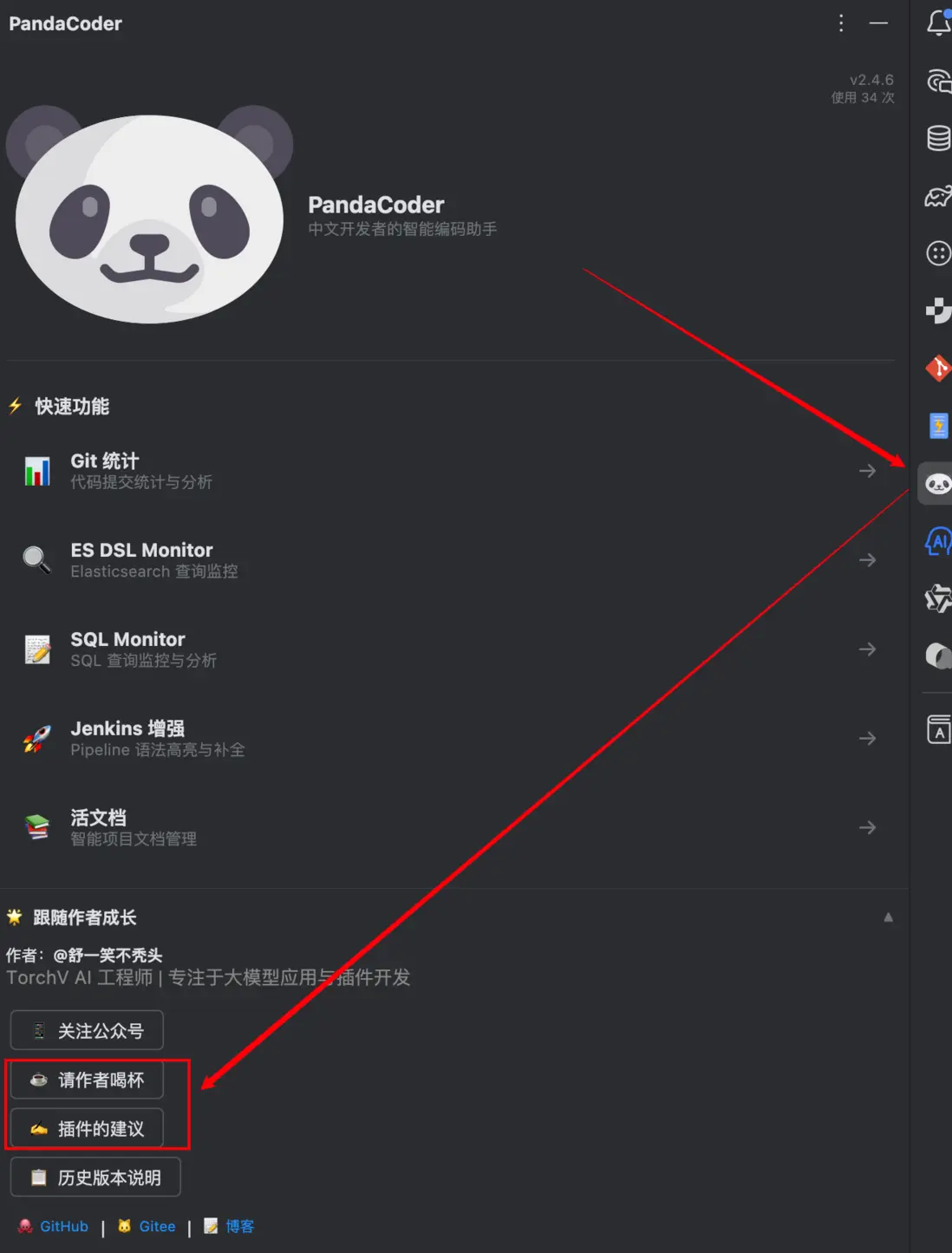 在PandaCoder的設計中,我刻意將"✍️ 插件的建議"功能置於"☕️ 請作者喝杯"之前。這不是偶然,而是基於一個深刻的洞察: