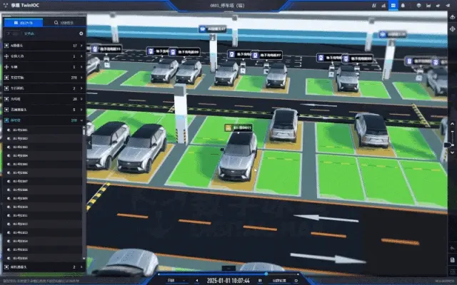 基於孿易IOC構建的停車場數字孿生應用,通過地上/地下雙層三維場景復現、車位狀態實時映射、遠程設備控制、智能數據分析等核心能力,讓停車場的每一個車位、每一台設備、每一次車輛進出都變得 "可視、可管、可控",實現停車管理從“被動響應”到“主動管控”的跨越。