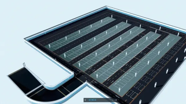 1.高保真場景構建: 圖觀 場景編輯器 是構建地上地下停車場三維世界的利器。它能夠快速搭建包含精確車位佈局、複雜車道流向、關鍵設施的高仿真三維場景,為孿生應用提供沉浸式、高精度的空間。