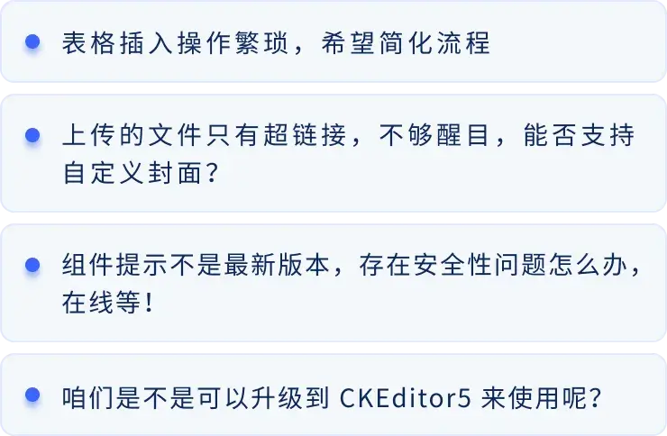 針對大家的反饋,我們基於 CKEditor4 最新版本完成了個性化封裝,解決安全問題,帶來4 大核心能力,直擊痛點: