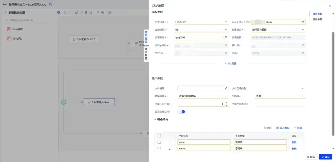 通過可視化配置,智能解析CSV文件(包括壓縮包),並將其按預設的字段結構轉換為流程可用的標準化數據,實現數據源的便捷接入。