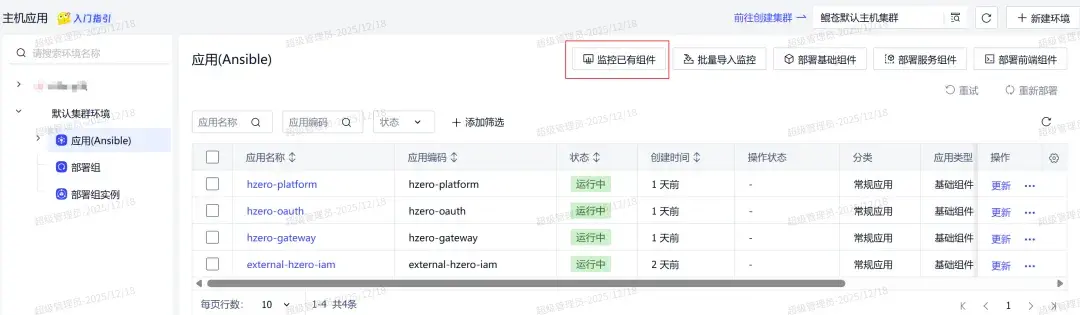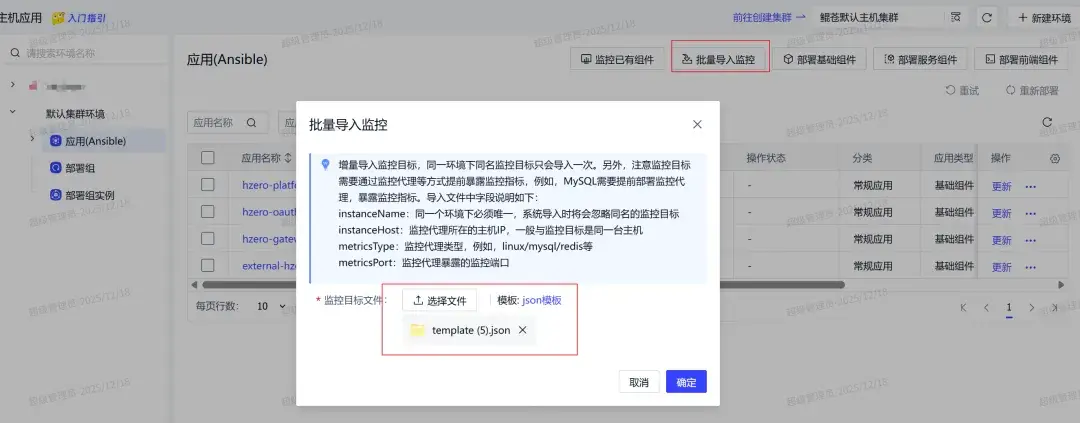 應用管理/主機應用:環境概覽頁-批量導入監控,適合初次大批量外部應用快速接入監控: