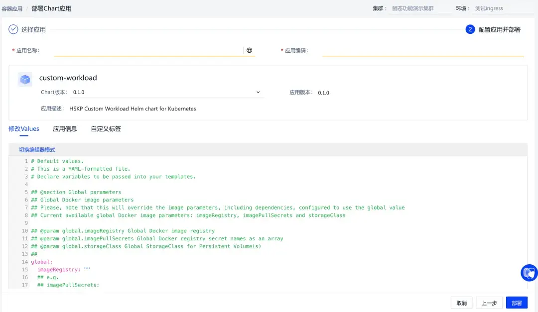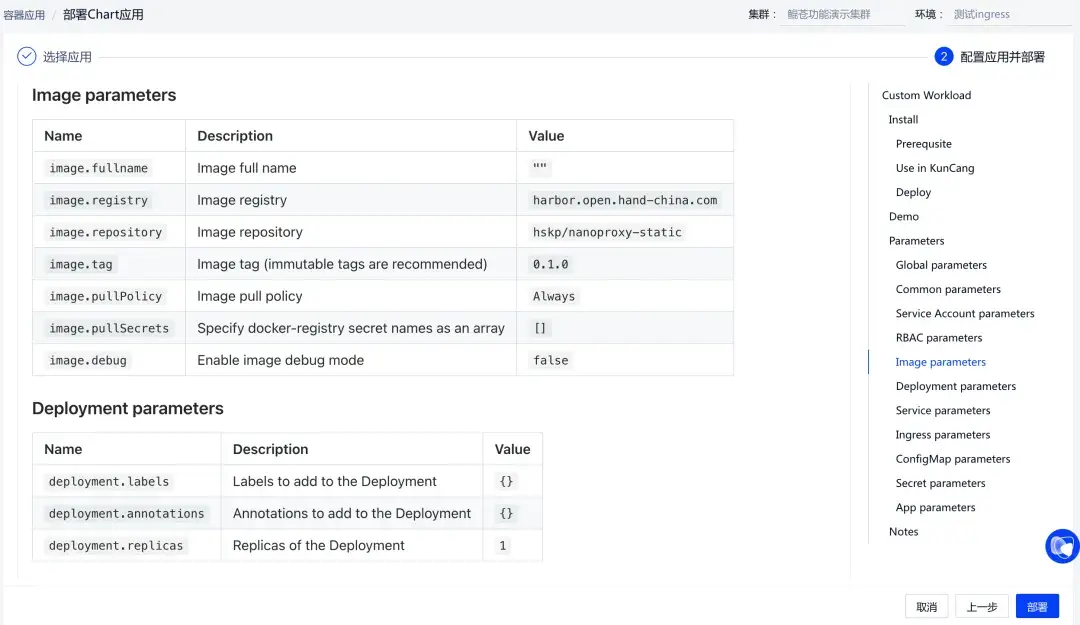 部署Chart應用,原生Helm Chart方式部署,可更細粒度精準控制更多參數信息