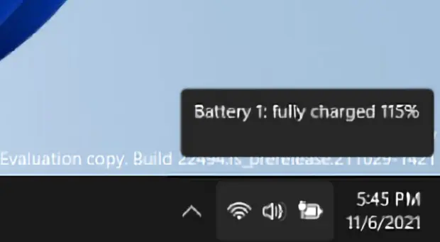 近日,一些內部人員注意到 Win11 Dev 預覽版 Build 22494 的一個奇特 Bug,Win11 錯誤地報告筆記本電腦的電量超過了 100%,這在物理上顯然是不可能的,起碼目前不可能。