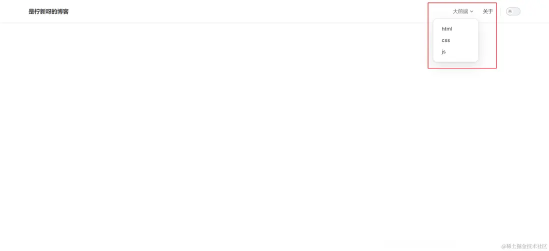它是顯示在頁面頂部的位置,可以在themeConfig下nav中配置。這裏link我們僅配置到 / 他會自動匹配到目錄的 index.md 文件,因為index.md是vitepress的默認入口文件,在vuepress中使用的是README.md作為默認的入口文件