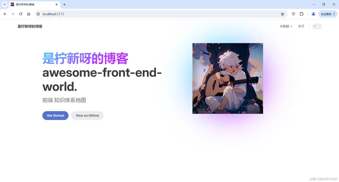 點開鏈接即可看到如下我們項目當前的樣子,vitepress幫我們默認添加了一個標題與暗黑模式功能
