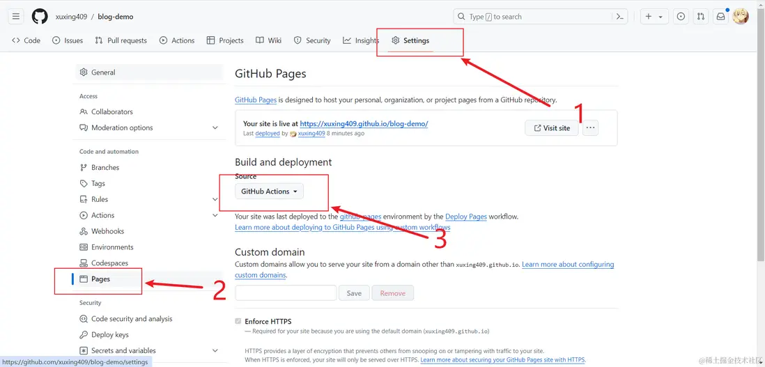 我最後生成的地址就是https://xuxing409.github.io/blog-demo/,以後我們每次推送代碼github就會自動進入流水線構建啦