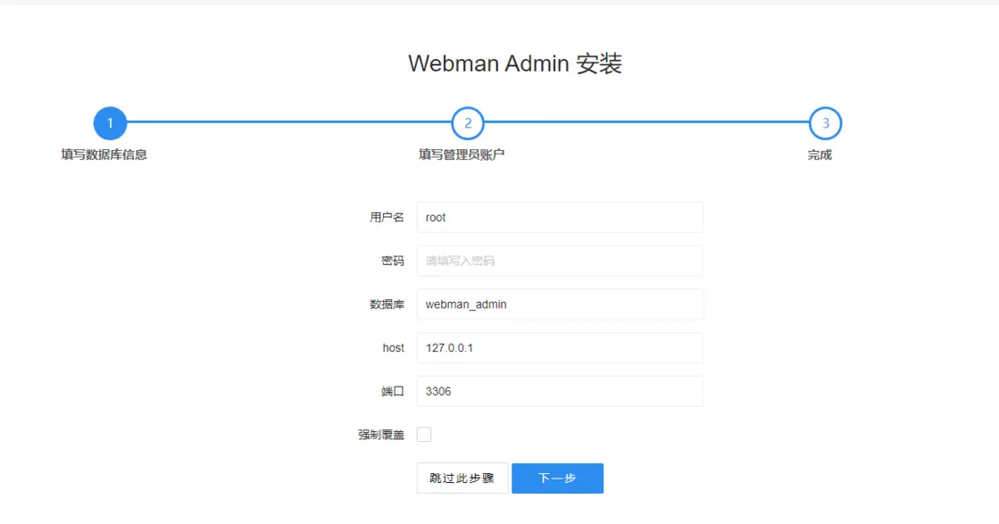 http://127.0.0.1:8787/app/admin/完成數據庫相關配置 - 4、重啓webman