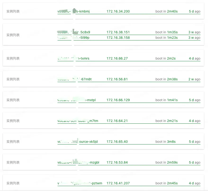 8 個模塊非合併部署前的啓動時間如下圖前 8 條記錄顯示,在 1-3 分鐘之間。