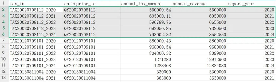 • 計算每家入駐企業2022-2024年的納税複合增長率,並生成排名;