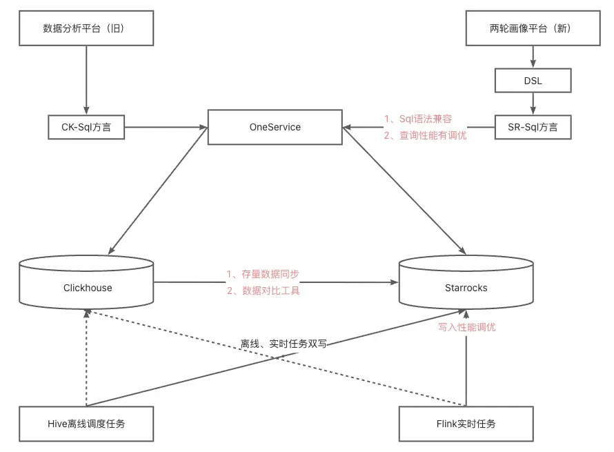 - 增量數據同步:通過 Flink 任務同步至 StarRocks,保障遷移過程中數據不丟失、延遲低,實現業務 “無感遷移”。