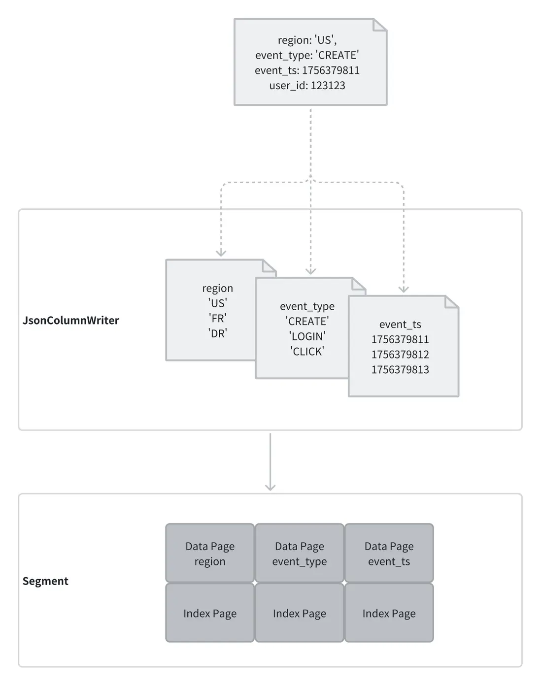 在 Segment 文件內部,這些字段已經與普通列無異——可被按需讀取,也能創建索引。