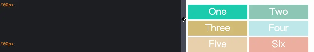 grid-template-columns: repeat(auto-fill, 200px) 表示列寬是 200 px,但列的數量是不固定的,只要瀏覽器能夠容納得下,就可以放置元素,代碼以及效果如下圖所示: