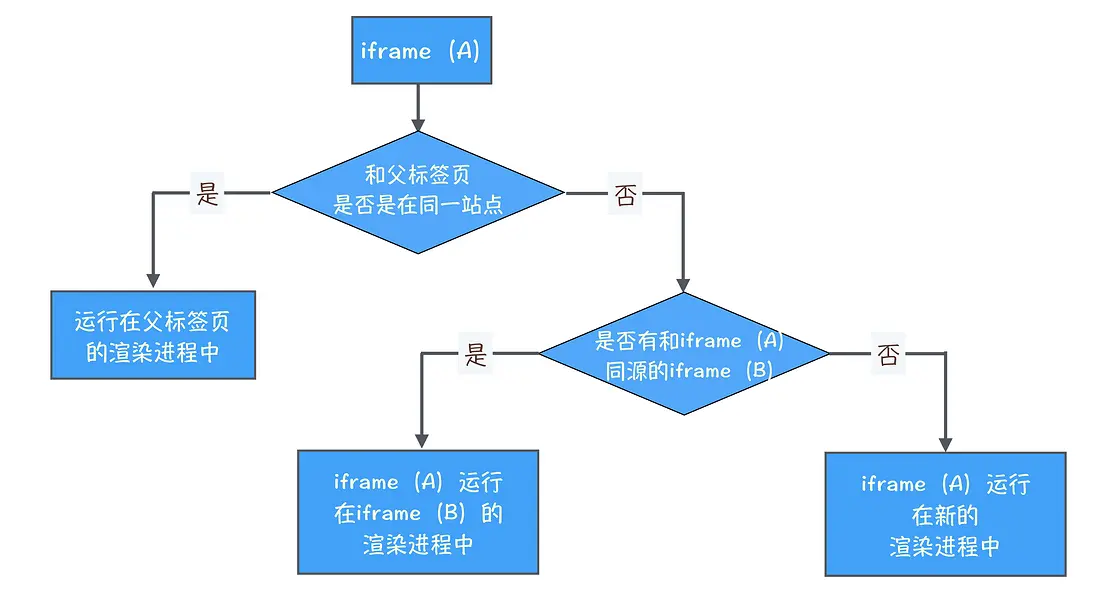 iframe 使用渲染進程數目的流程圖,如下: