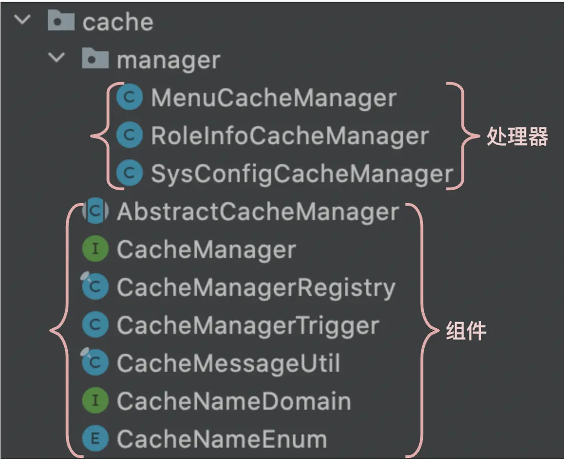 b. 可以使用一個枚舉類將不同的緩存處理器分開,有利於管理,取名為CacheNameEnum;