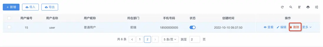 1. 用户切換到第二頁,前端發起了請求,如:http://localhost:8080/user/pageQuery?pageNum=2&pageSize=5 ,此時第2頁有一條數據;