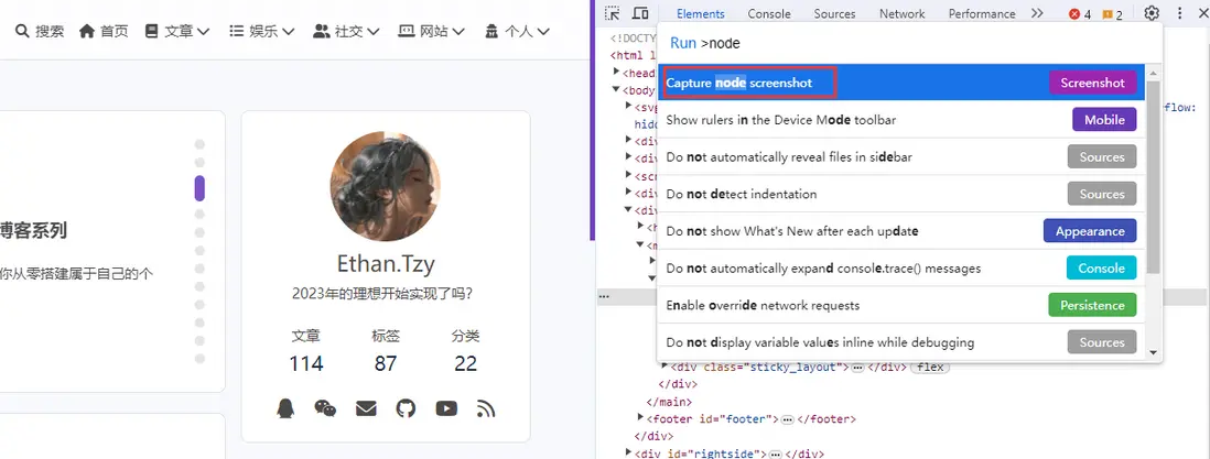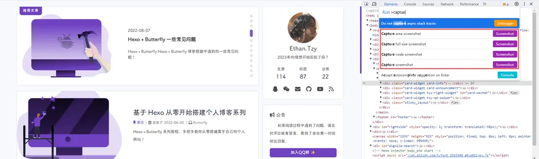 這裏有常用幾種截取方式:Capture full size screenshot(截取全屏) 、Capture area screenshot(截取自選區域)、Capture node screenshot(截取選中節點) 、Capture screenshot(截取當前範圍) 。