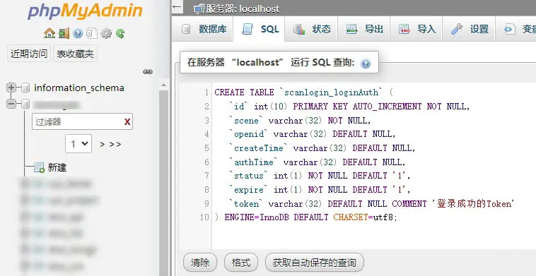 創建表 `scanlogin_loginAuth` (