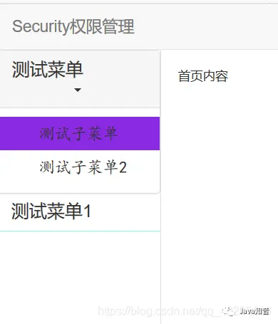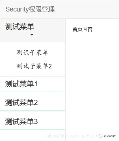 用户名為admin3有測試用户角色的用户登錄,菜單顯示。