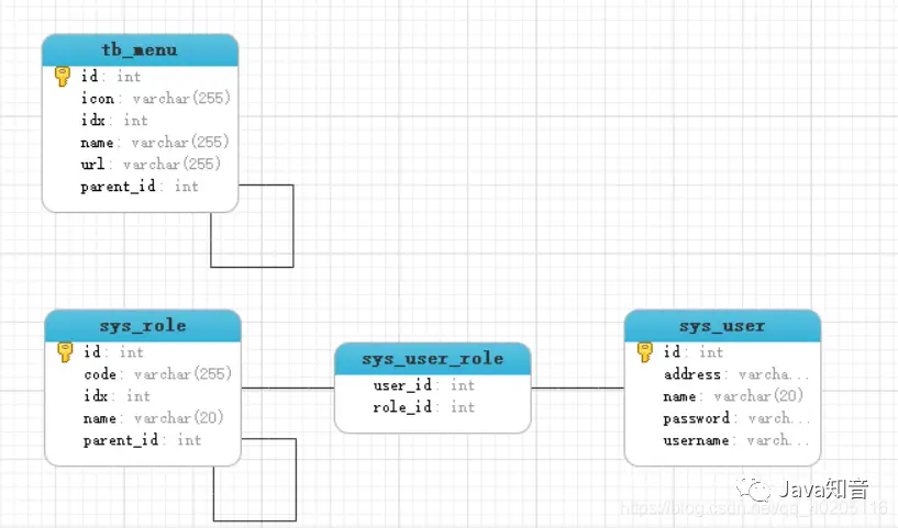 - 用户和角色中間表(sys_user_role)====> 用户和角色中間表
