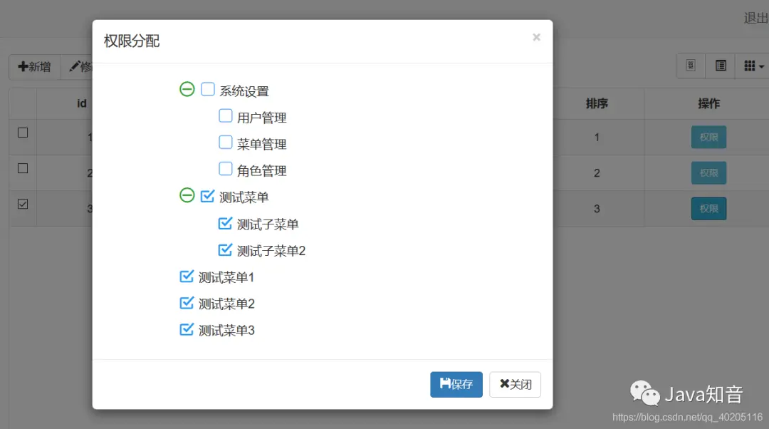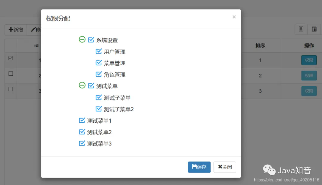 - 角色(SysRole)=====> 角色及角色對應的菜單