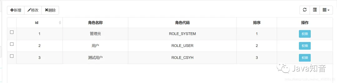 角色及菜單權限表sys_role,其中父節點parent 為null時為角色,不為null時為對應角色的菜單權限。