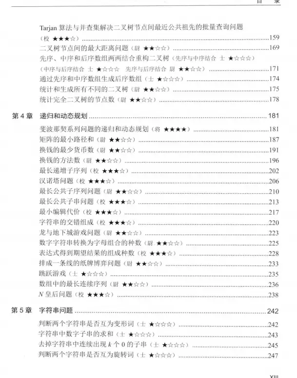 本書採用“題目+解答”的方式組織內容,並把面試題類型相近或者解法相近的題目儘量放在一起,讀者在學習本書時很容易看出面試題解法之間的聯繫,使知識的學習避免碎片化。本書將所有的面試題從難到易依次分為“將”“校”“尉”“士”四個檔次,方便讀者有針對性地選擇“刷”題。本書收錄的所有面試題都給出了最優解講解和代碼實現,並且提供了一些普通解法和最優解法的運行時間對比,讓讀者真切地感受到最優解的魅力!