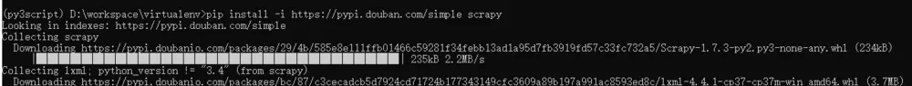 pip install -i https://pypi.douban.com/simple scrapy (使用豆瓣源)