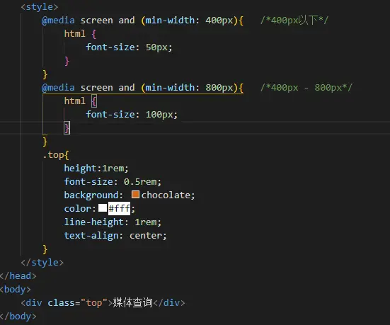 @media screen and (max-width:500px){...}    //在屏幕上頁面最大的寬度是500px,在頁面寬度為500px內設置的樣式才會生效(樣式只在屏幕寬度小於等於500像素才生效)
