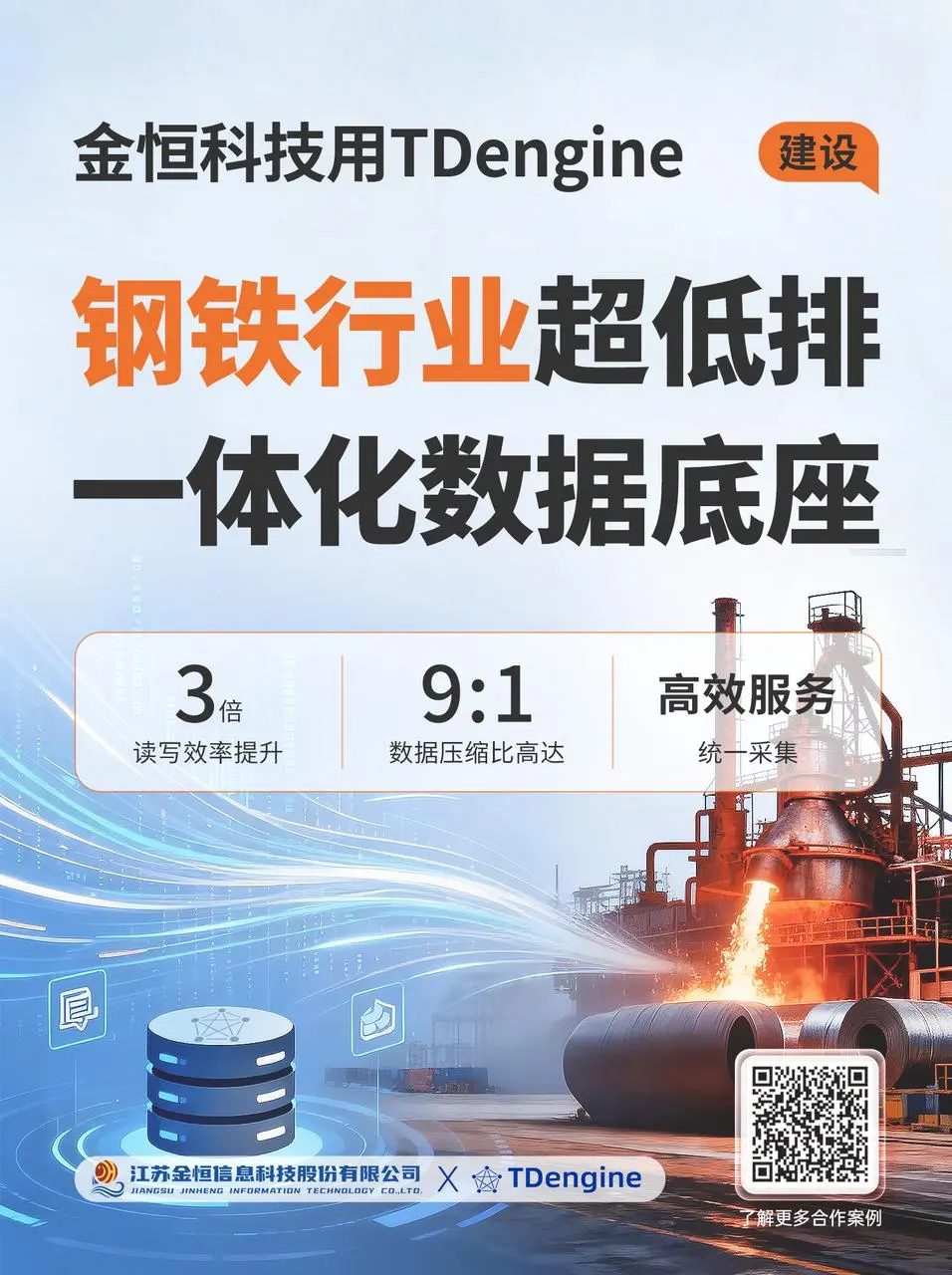 作為國家級專精特新“小巨人”企業,金恆科技在沙鋼安陽永興的環保超低排一體化平台項目中,致力於打造統一的數據採集、存儲與服務體系。經過技術選型對比,金恆最終選擇了 TDengine TSDB 作為底層時序數據庫,憑藉其高性能寫入、高壓縮比與穩定的查詢響應,為平台提供堅實的數據基礎。