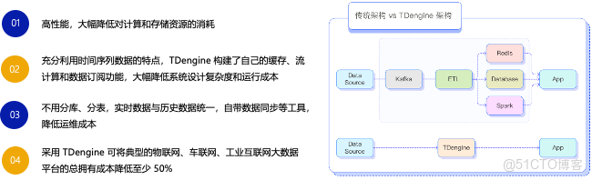 下表展示了傳統方案與 TDengine TSDB 在核心性能指標上的對比情況: